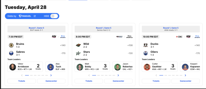 🇨🇦: @Sportsnet & @TVASports pic.twitter.com/pUqskKxilj— NHL (@NHL) April 28, 2026