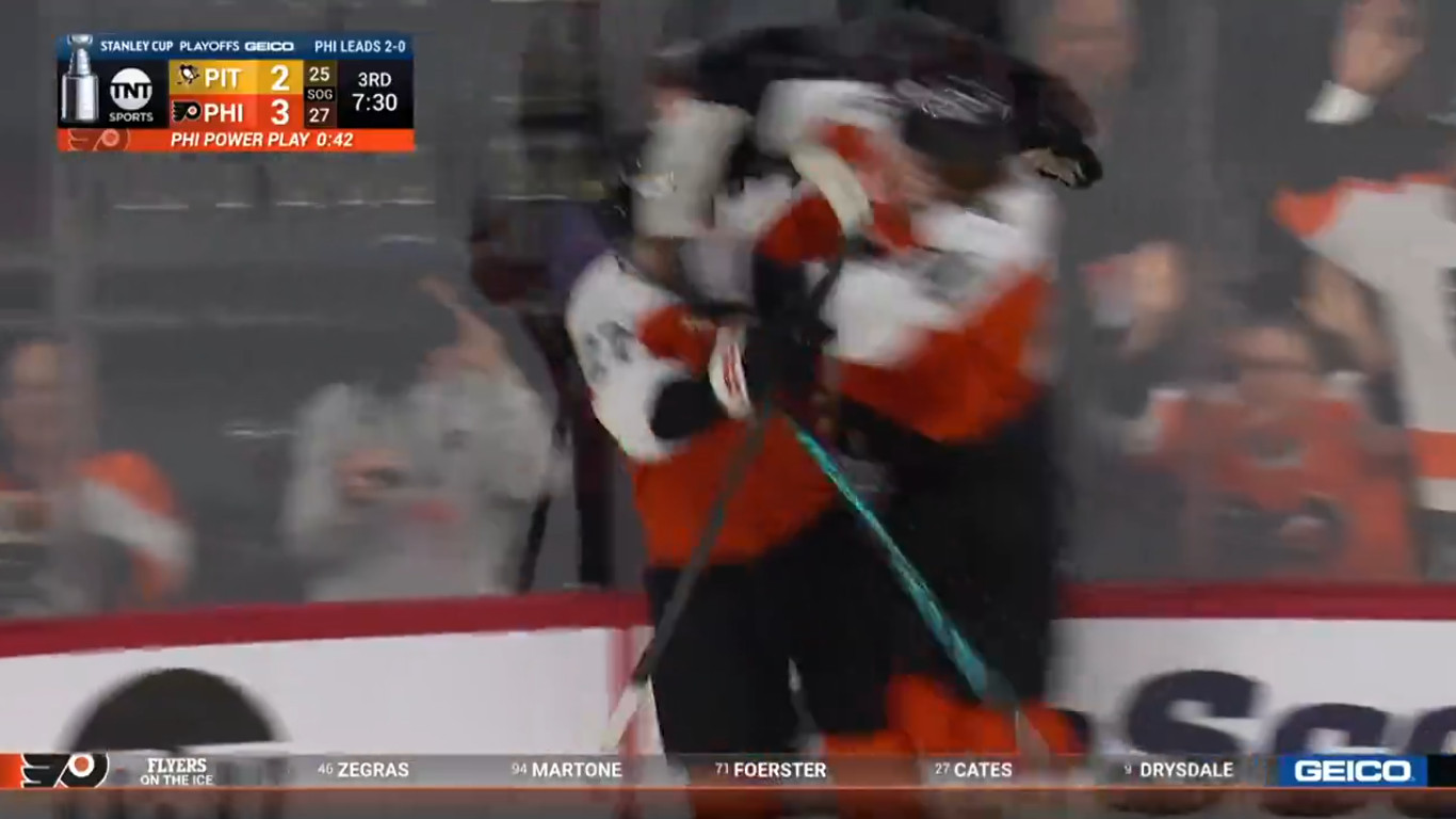 Les Penguins ont tenté de revenir dans le match en troisième période grâce à un but d'Erik Karlsson, mais les Flyers ne voulaient tout simplement rien savoir.
