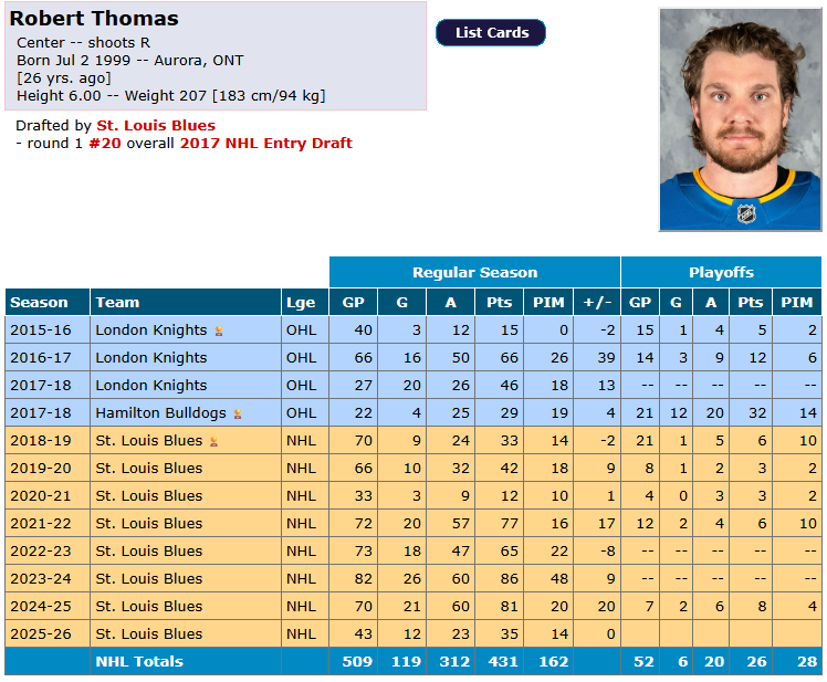 Notons, en passant, que Thomas a gagné deux titres dans le junior et une Coupe Stanley en 2019.