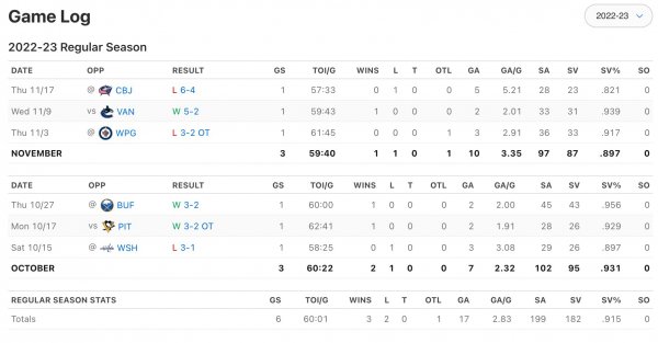 Starting Goalie Rankings (Even Strength) – November 19 pic.twitter.com/yWV0OuQ6Sx