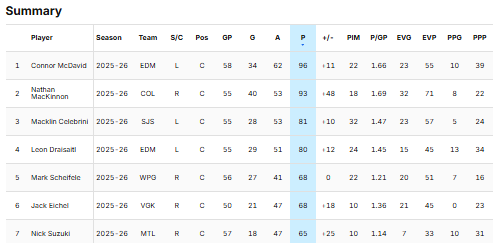 Surtout quand le seul gars qui le devance s'appelle Connor McDavid…