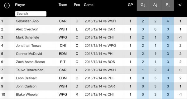 1. Cette position revient évidemment à Alex Ovechkin, qui a inscrit un deuxième tour du chapeau consécutif pour porter son total de buts à 28.