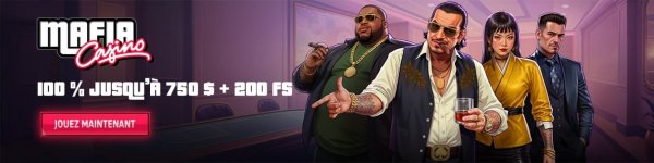 - 👑 MAFIA CASINO : Empochez 750 $ CA + 200 tours gratuits et découvrez pourquoi il est le #1 au Canada.