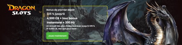 - 👑 DRAGONSLOTS : Lancez vos parties avec 10 500 $ CA + 650 tours gratuits et visez les plus gros jackpots.