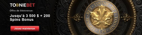 - 👑 TOONIEBET : déposez seulement 1 $ CA et obtenez jusqu'à 3 500 $ CA de bonus exclusif.