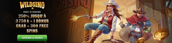 - 👑 WILDSINO CASINO : profitez de 3 750 $ CA + 300 FS + 1 bonus crab sans dépôt pour jouer gratuitement.