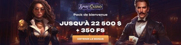 - 👑 SPIRIT CASINO : recevez 22 500 $ CA + 350 FS de bonus et vivez l'expérience des meilleurs jeux en direct.