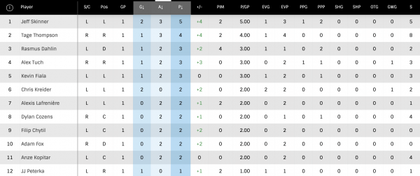 – Sans surprise, les joueurs des Sabres dominent le classement des meilleurs pointeurs de la soirée.