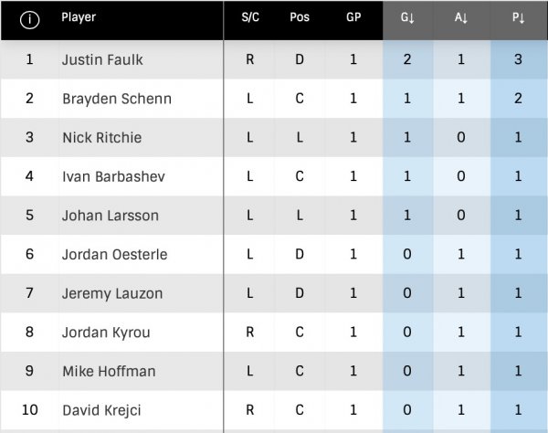 – Justin Faulk continue de très bien faire à la ligne bleue des Blues.