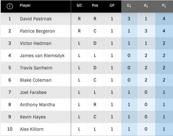 1. David Pastrnak est récemment revenu au jeu et sa présence a changé le visage de l'attaque des Bruins! Avec trois buts et une passe, il a pris part à tous les buts des siens face aux Flyers. Son premier, dès les premières secondes du match, était de toute beauté!