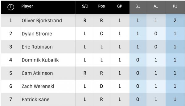 3. Du côté de Columbus, c'est Oliver Bjorkstrand qui s'est distingué avec un but…