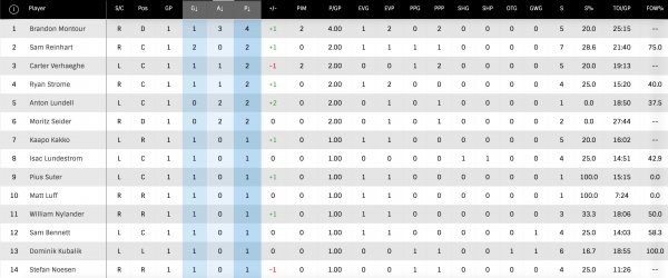 Notons aussi que chez les Panthers, Carter Verhaeghe a marqué, ce qui constitue (déjà) son huitième but de la saison, et que Spencer Knight a réalisé 32 arrêts.