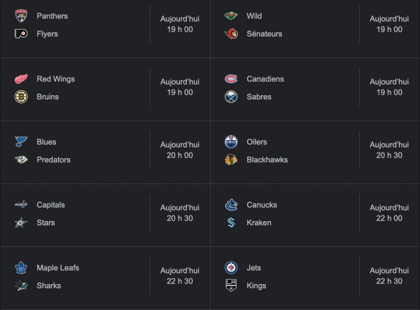 – Ce soir, dix matchs sont à l'horaire, dont celui du Canadien, qui affronte les Sabres à Buffalo.