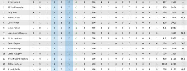 Il s'agit du 200e but de la carrière de Nugent-Hopkins, qui se classe au neuvième rang des marqueurs de l'histoire de l'équipe.