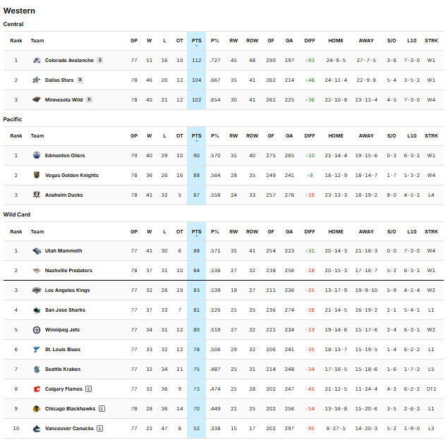 – Le classement dans l'Ouest. Grosse victoire des Oilers!