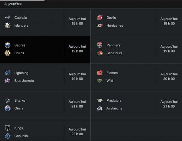 – Voici les matchs à l'horaire pour aujourd'hui: