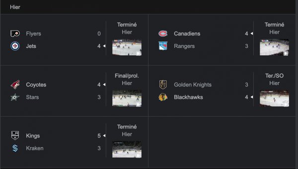 – De son côté, le Canadien a mis fin à une séquence de neuf défaites consécutives avec une victoire face aux Rangers. Voici le lien vers le compte rendu de mon collègue Félix Forget.