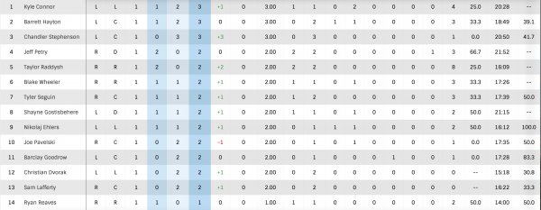 Kyle Connor lui, en a profité pour inscrire son 45e but de la saison. Il a ainsi battu le record pour le plus de filets en une saison pour un joueur des Jets.