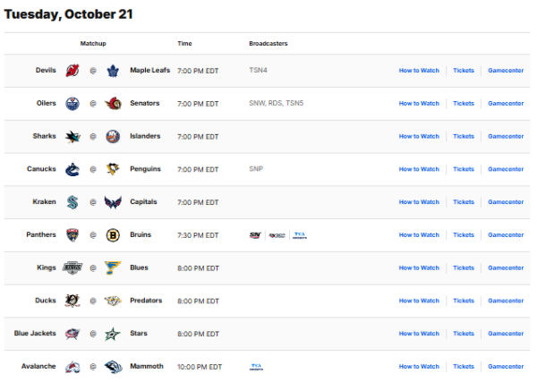 — NHL Public Relations (@NHLPR) October 21, 2025