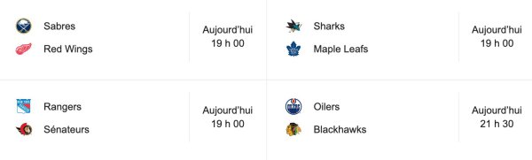 Outre la rencontre du Canadien, il y avait huit matchs qui étaient présentés hier dans la LNH. Voici les faits saillants principaux de la soirée.