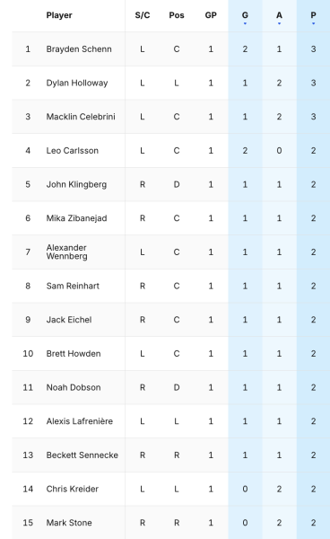 Dans la victoire des Canards, Leo Carlsson (deux buts), Cutter Gauthier (deux passes), Chris Kreider (deux passes), Beckett Sennecke (un but et une passe) et Ryan Strome (deux passes) ont chacun récolté deux points.