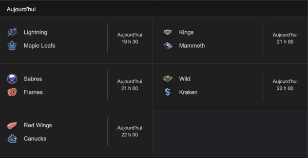 Hier soir dans la LNH, il y avait huit matchs à l'affiche.