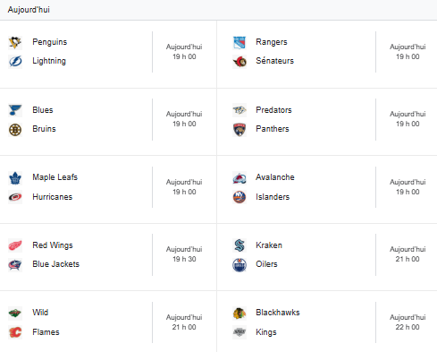 Cinq matchs étaient présentés dans la LNH hier soir, dont celui du Canadien face aux Jets.