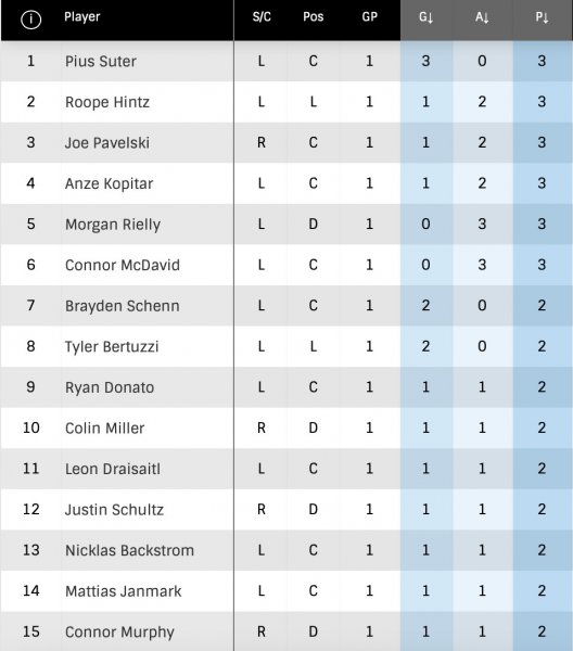 – Les joueurs les plus productifs hier :