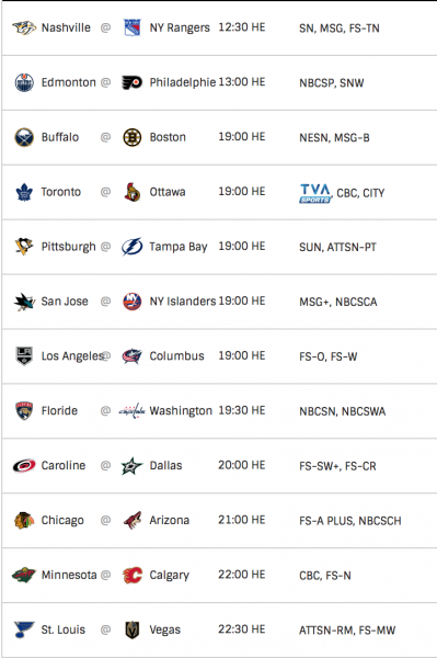 – 12 affrontements sont sur le menu du jour dans la LNH :