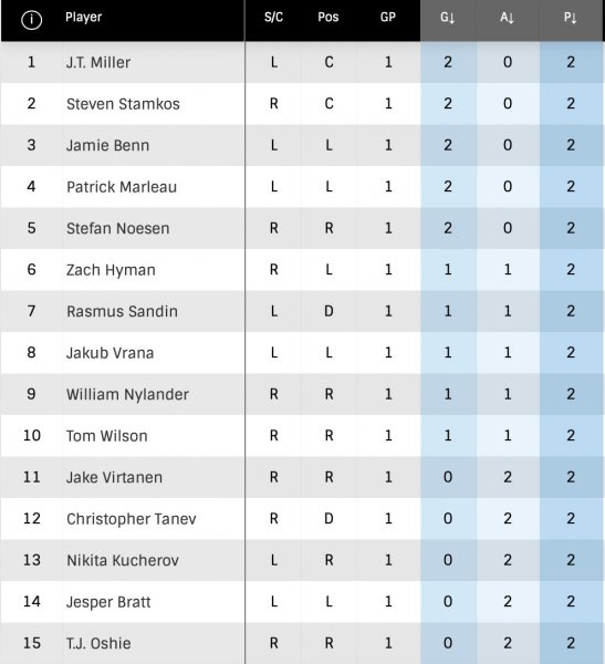 1. Parmi les bonnes acquisitions de l'été dernier, on ne peut passer sous silence celle de J.T. Miller par les Canucks.