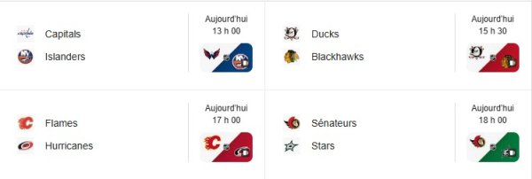 – Au programme aujourd'hui dans la LNH : quatre matchs.