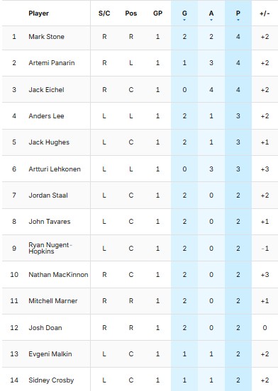 À noter que Jack Eichel et Mark Stone ont tous deux obtenu quatre points, ce qui les place au sommet des meilleurs pointeurs de la LNH, avec respectivement 15 et 13 points en six matchs.