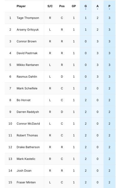 Hier, il est le premier joueur recrue à atteindre le plateau des 25 points et le premier à atteindre le plateau des 10 buts.