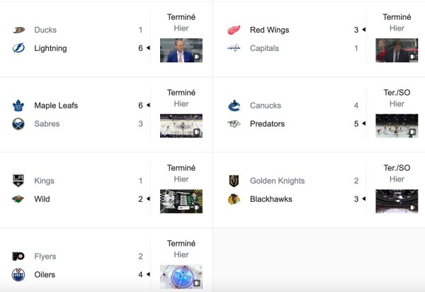 Outre celle du Canadien, huit parties étaient disputées hier soir dans la LNH. Voici les faits saillants.