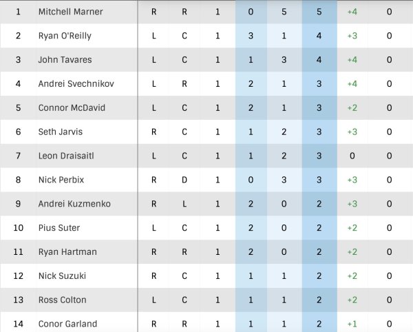 Notons que John Tavares a récolté un but et trois passes et Mitch Marner, lui, a obtenu cinq mentions d'aide.