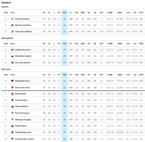 – Le classement dans l'Est est encore (très) serré :