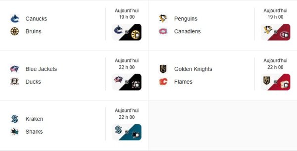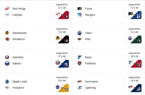 – Au programme aujourd'hui dans la LNH : 13 matchs.