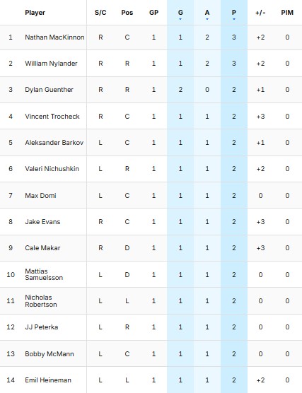 5. Nathan MacKinnon s'approche à un point du plateau des 60 points