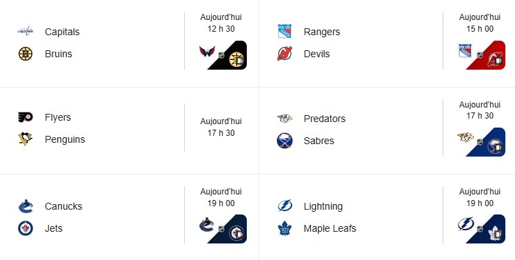 – Au programme aujourd'hui dans la LNH : 11 matchs.
