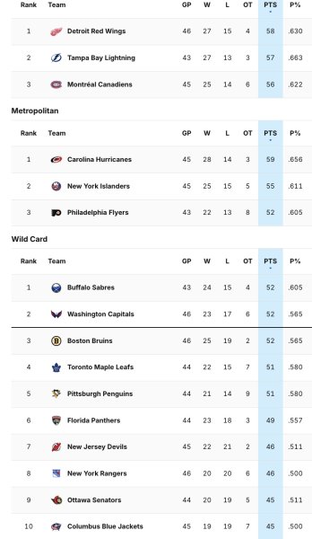 Le club a autant de points que les Capitals de Washington et du dernier rang donnant accès aux éliminatoires.