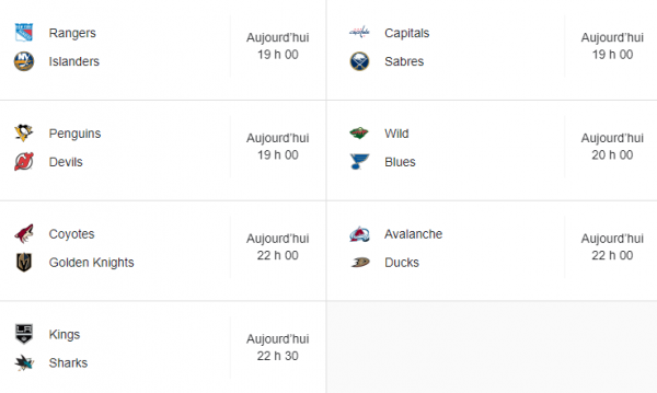 – Voici les matchs à l'horaire d'aujourd'hui :