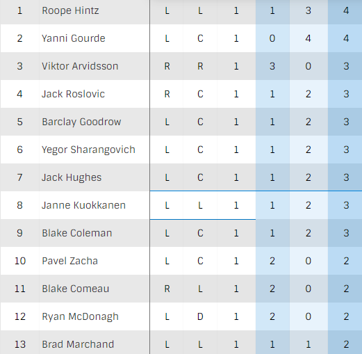 – Un petit coup d'oeil aux joueurs les plus productifs de la soirée :