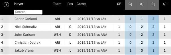 ARI 3 – LAK 0https://t.co/NFSYj50hKj pic.twitter.com/Ea6lqYHzTz— NHL (@NHL) November 19, 2019