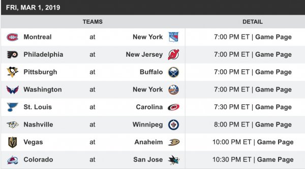 Tonight's game = four. pic.twitter.com/XEeGH0iwLn— NHL (@NHL) March 1, 2019
