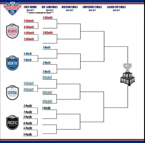 On présentera ensuite des séries 3 de 5 à l'intérieur de la division, puis des séries 4 de 7 en finale de conférence puis en finale de la Coupe Calder.