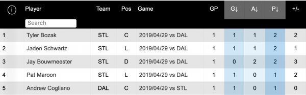 Le 3e duel qui opposait les Stars aux Blues était un brin paisible avant l'explosion lors du 3e engagement… Celles et ceux qui ont opté pour le « dodo » ont raté les quatre filets qui ont été inscrits lors des sept dernières minutes de la période. Deux buts de chaque côté… et qui est celui qui a inscrit le filet vainqueur alors qu'il restait moins de deux minutes à écouler? Patrick Maroon!