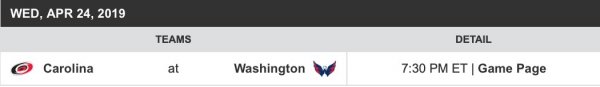– La deuxième ronde s'amorcera dès jeudi alors que les Jackets affronteront les Bruins, et les Stars lutteront contre les Blues. En attendant, ce soir, on peut savourer le match ultime entre les Capitals et les Hurricanes!