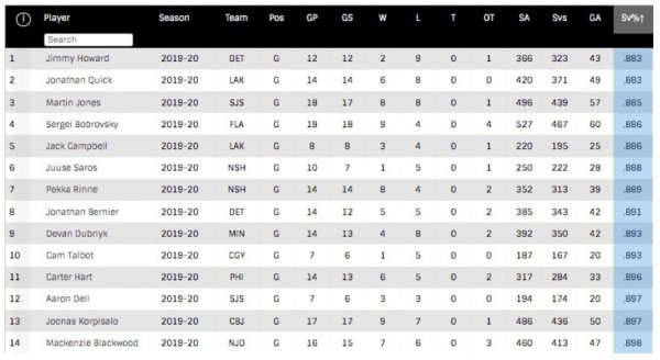 La preuve? Pas moins de 14 gardiens de la LNH ont joué plus de sept matchs et n'arrivent même pas à maintenir une moyenne d'arrêt de plus de .900.