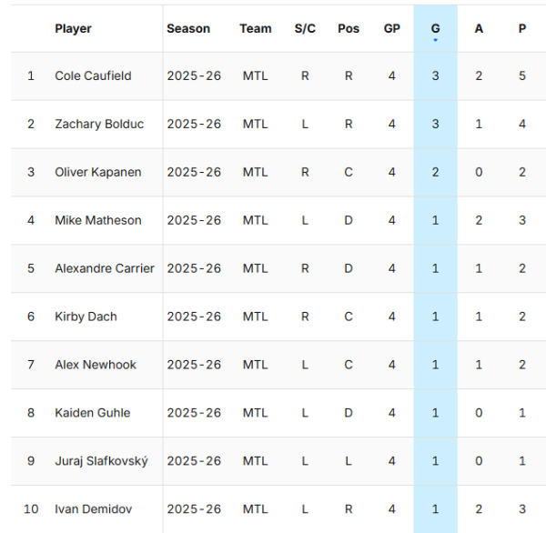 Et à la lumière de ses recherches, il a été en mesure de conclure que 13 des 15 buts du CH (outre ceux de Mike Matheson et d'Alexandre Carrier) ont été marqués par des joueurs de moins de 25 ans.