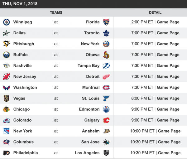 — NHL (@NHL) November 1, 2018